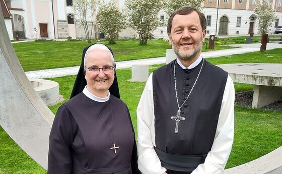 Das Leitungsteam der Ordenskonferenz der Diözese Linz (v. r.): Abt Reinhold Dessl (Erster Vorsitzender) und Sr. Petra Car (Zweite Vorsitzende). (c) ÖOK